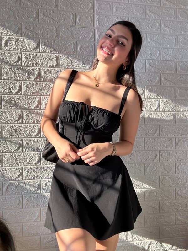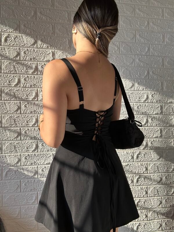 - Diseño Ajustable: Corsé estructurado con tirantes finos y un sistema de ajuste en la espalda que garantiza un fit perfecto y favorecedor.